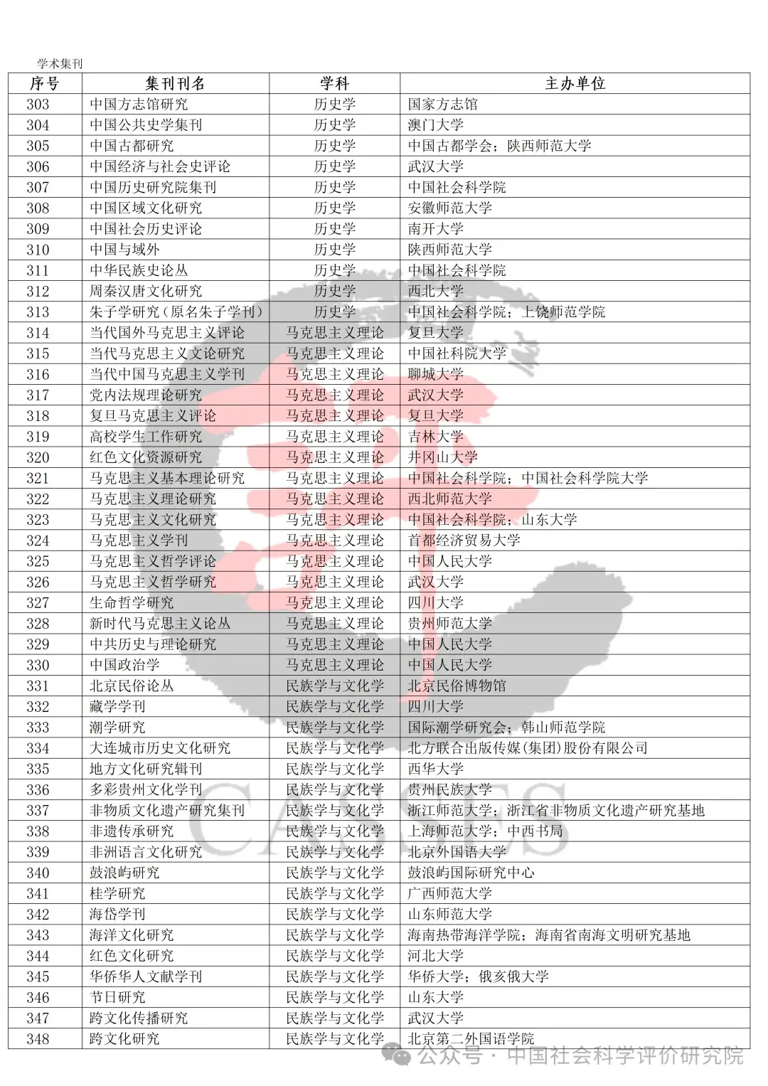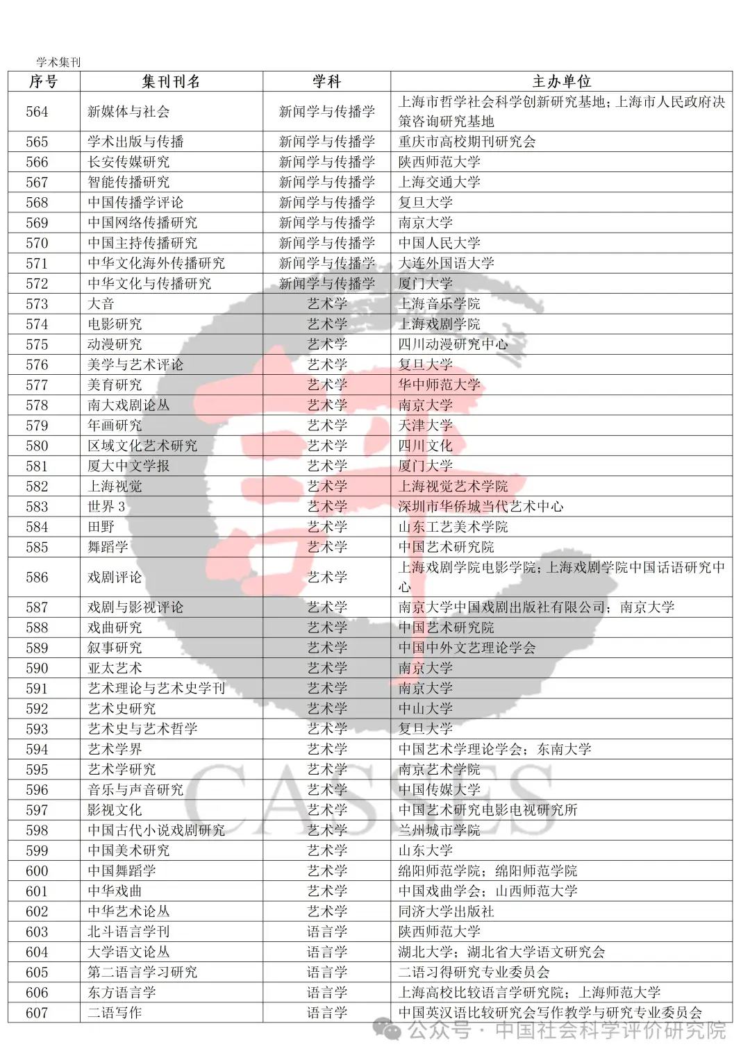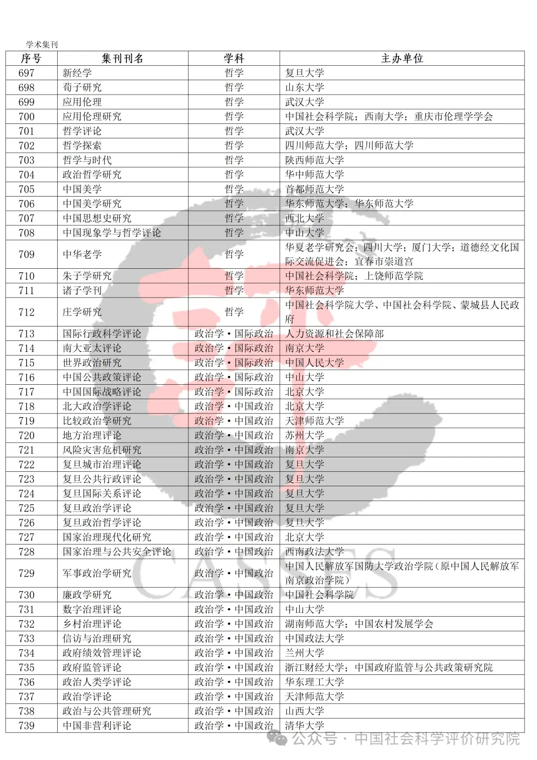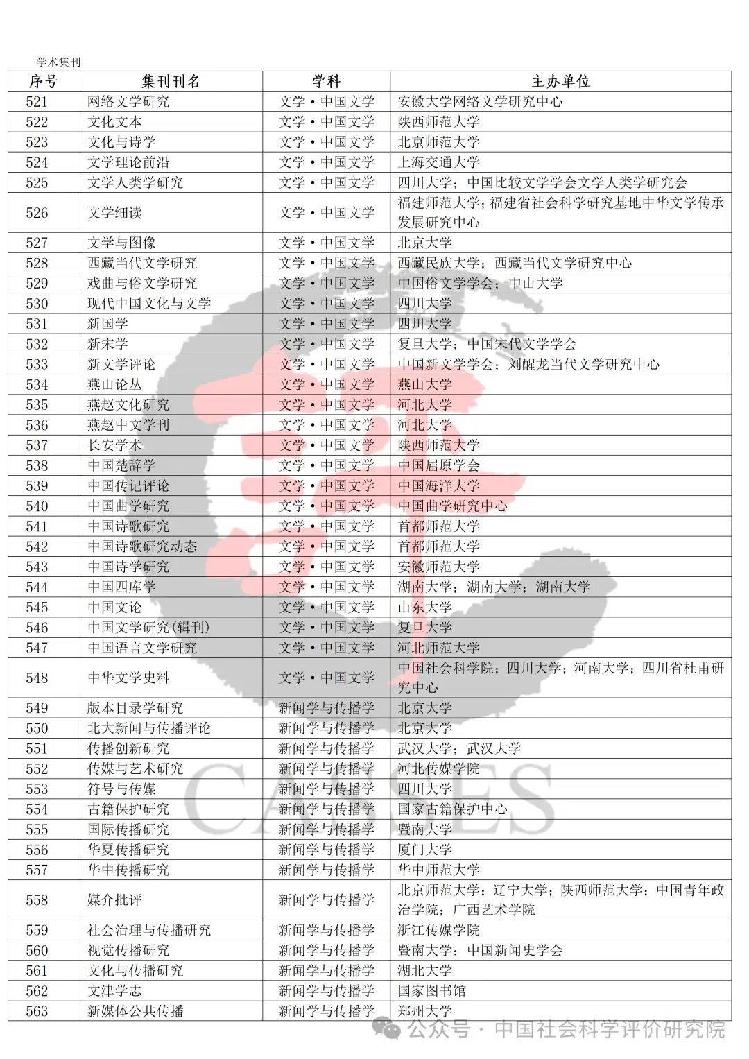 中国社会科学评价研究院公示初步确定的集刊名单及分类情况,公示期30天(自发布之日起)。欢迎社会各界提出宝贵意见建议。反馈意见经梳理、核实、确认后,将作为确定最终评价对象及学科分类的依据。