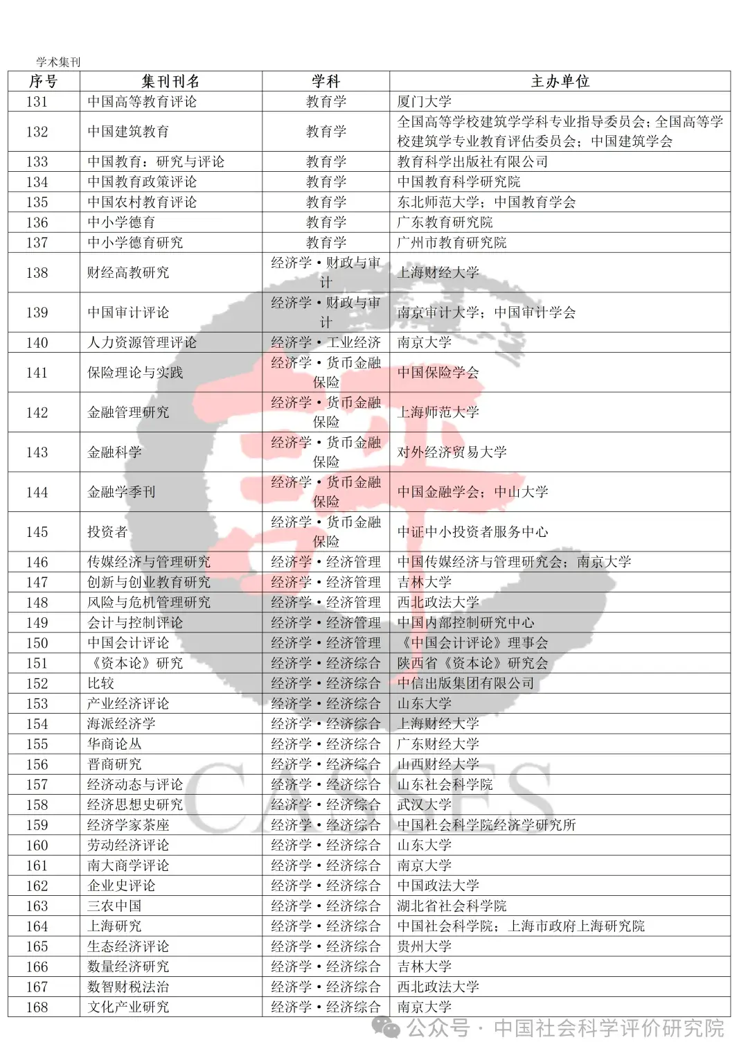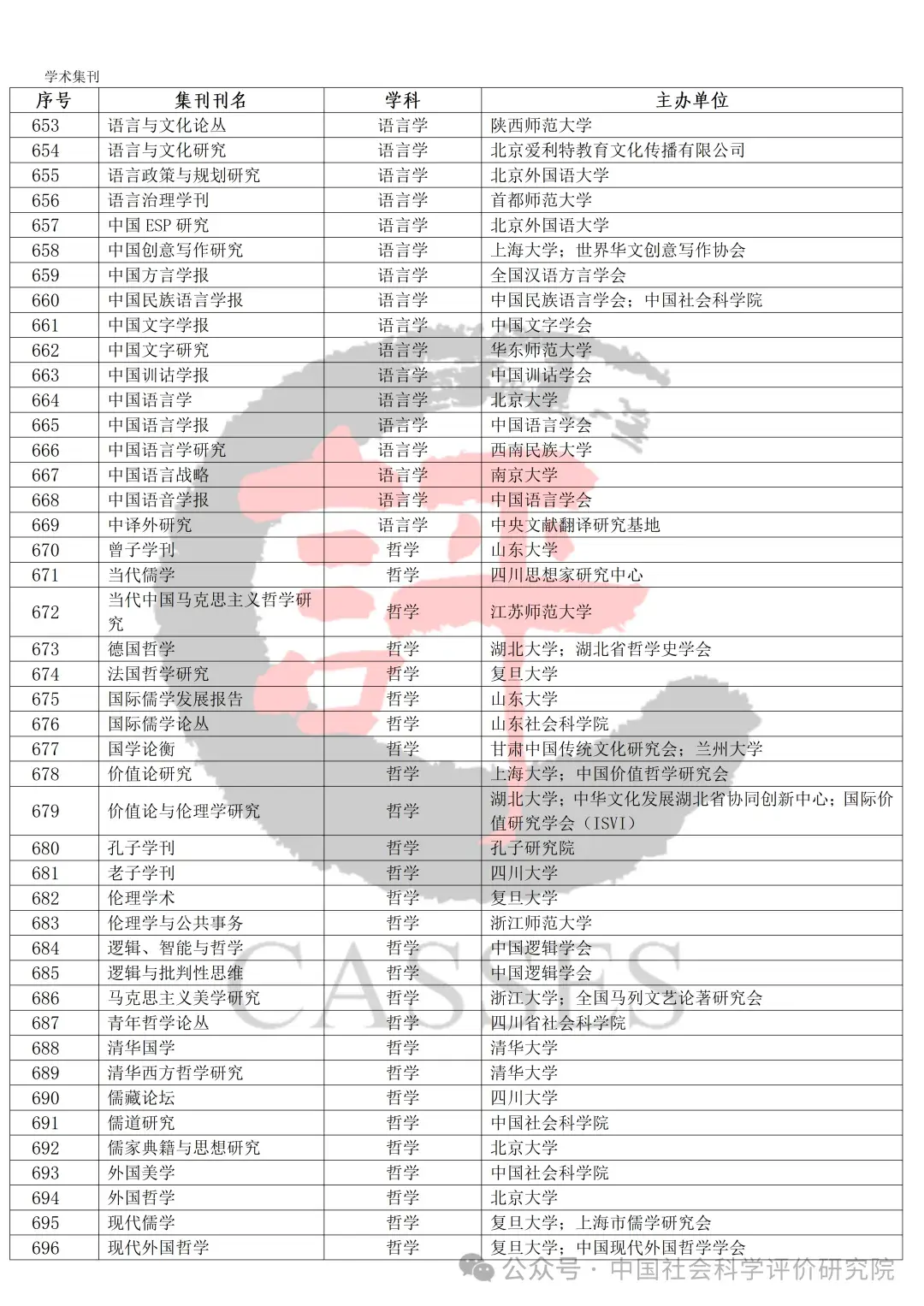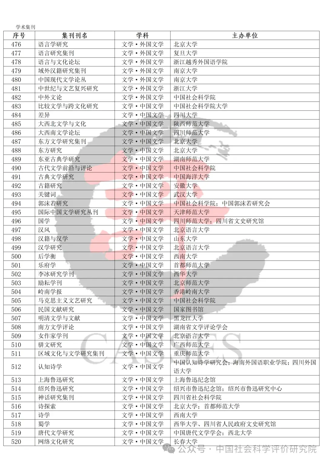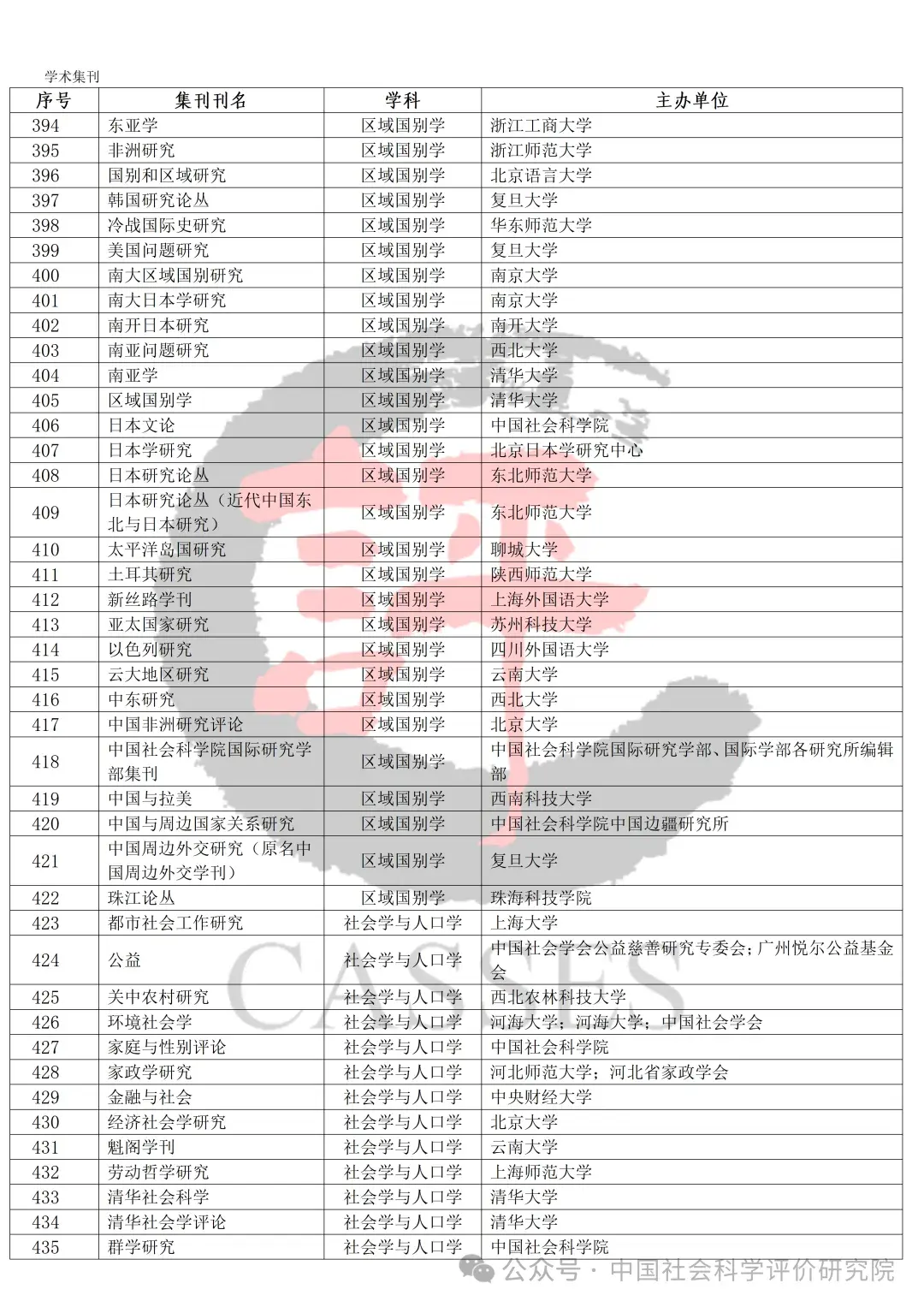 中国社会科学评价研究院公示初步确定的集刊名单及分类情况,公示期30天(自发布之日起)。欢迎社会各界提出宝贵意见建议。反馈意见经梳理、核实、确认后,将作为确定最终评价对象及学科分类的依据。