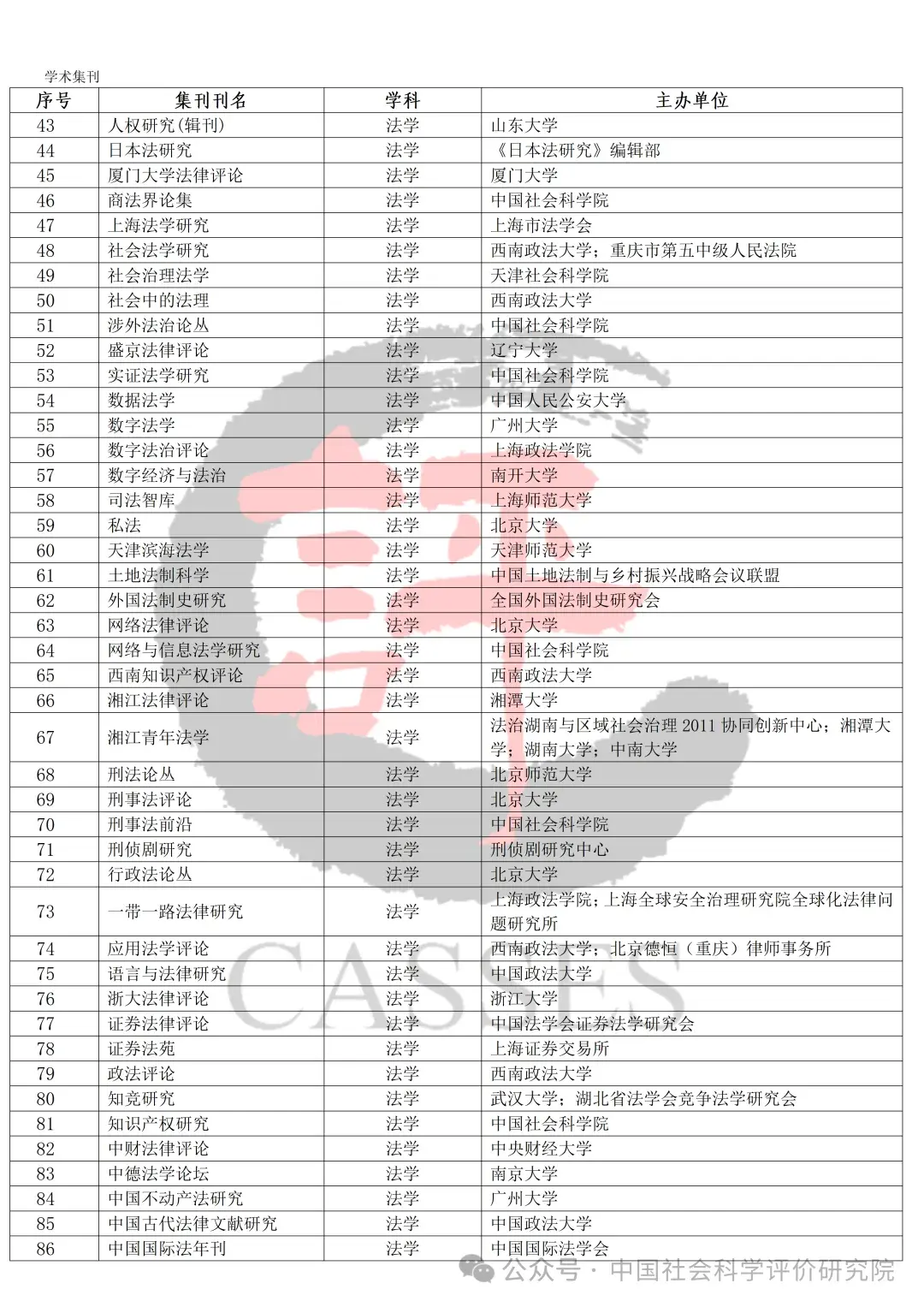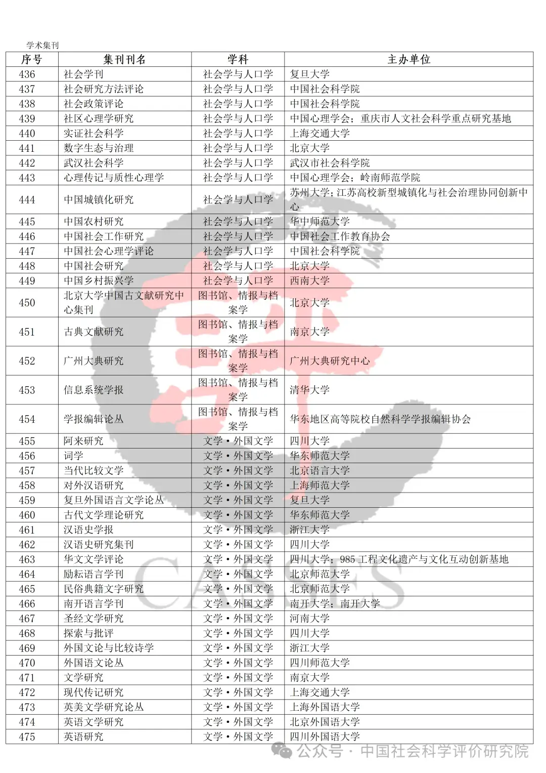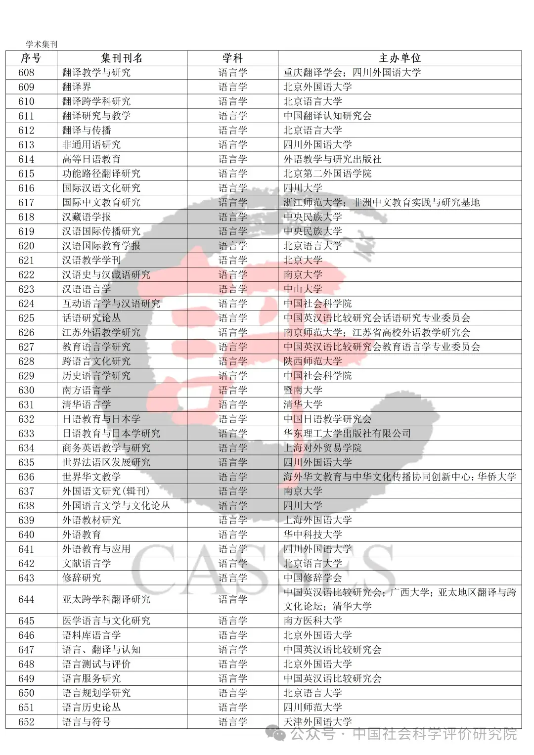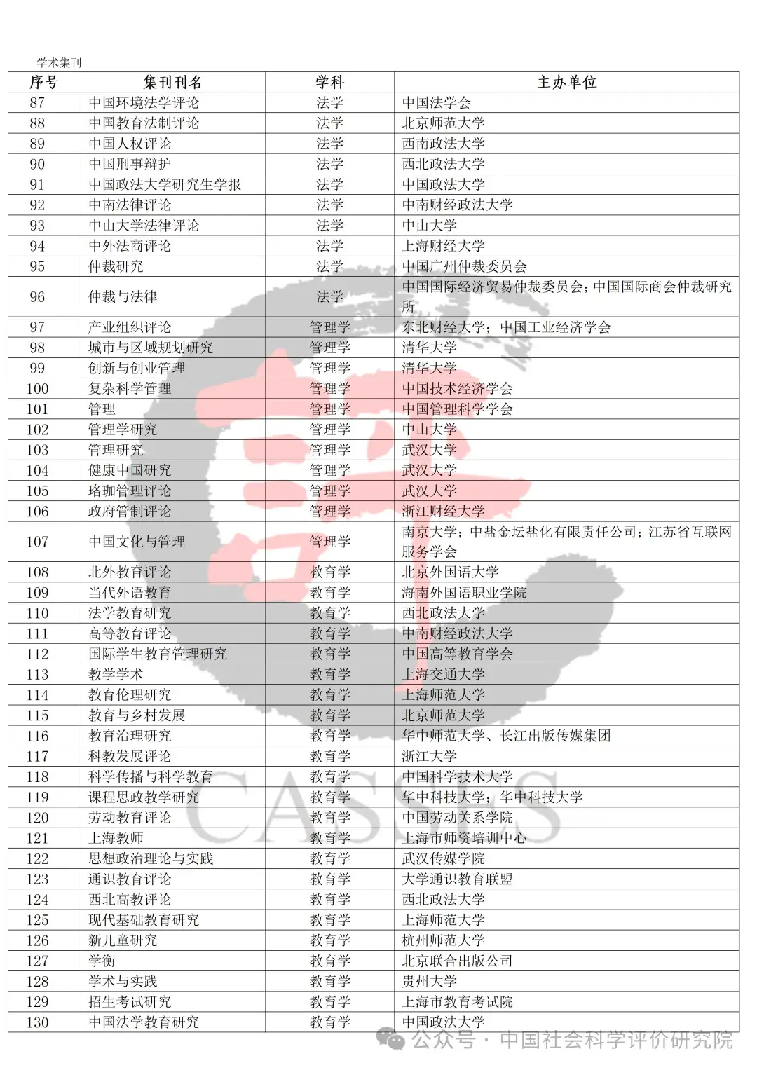 中国社会科学评价研究院公示初步确定的集刊名单及分类情况,公示期30天(自发布之日起)。欢迎社会各界提出宝贵意见建议。反馈意见经梳理、核实、确认后,将作为确定最终评价对象及学科分类的依据。
